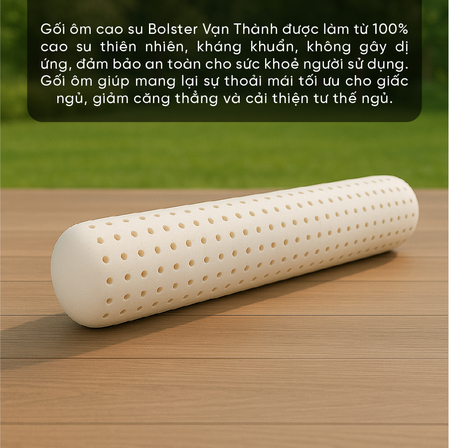 - Gối Ôm Cao Su Vạn Thành Bolster VTGCSO20100 được sản xuất từ 100% cao su thiên nhiên, hoàn toàn không chứa cao su tổng hợp.