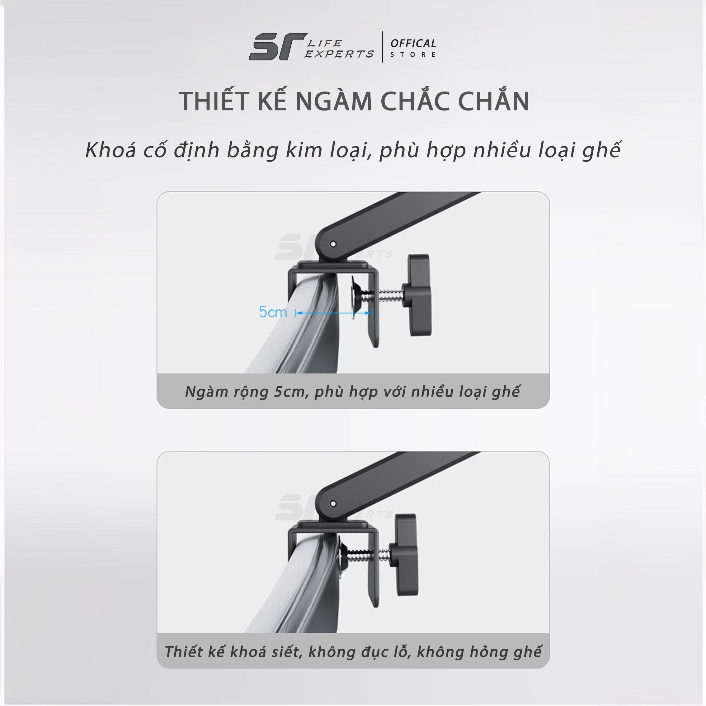 - Ngàm khóa cố định bằng kim loại, dùng được cho nhiều loại ghế
