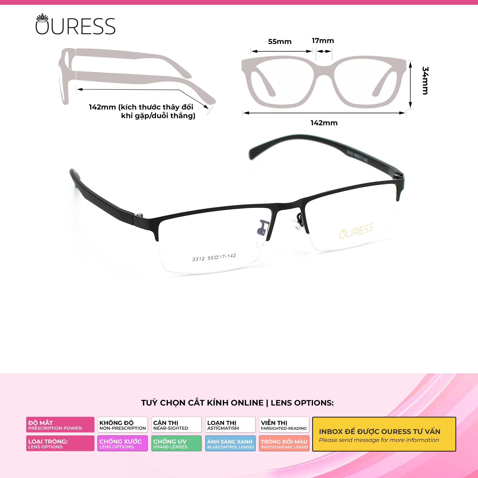 ✨Gọng kính cận 3312 hợp kim cước OURESS thời trang nam nữ siêu bền