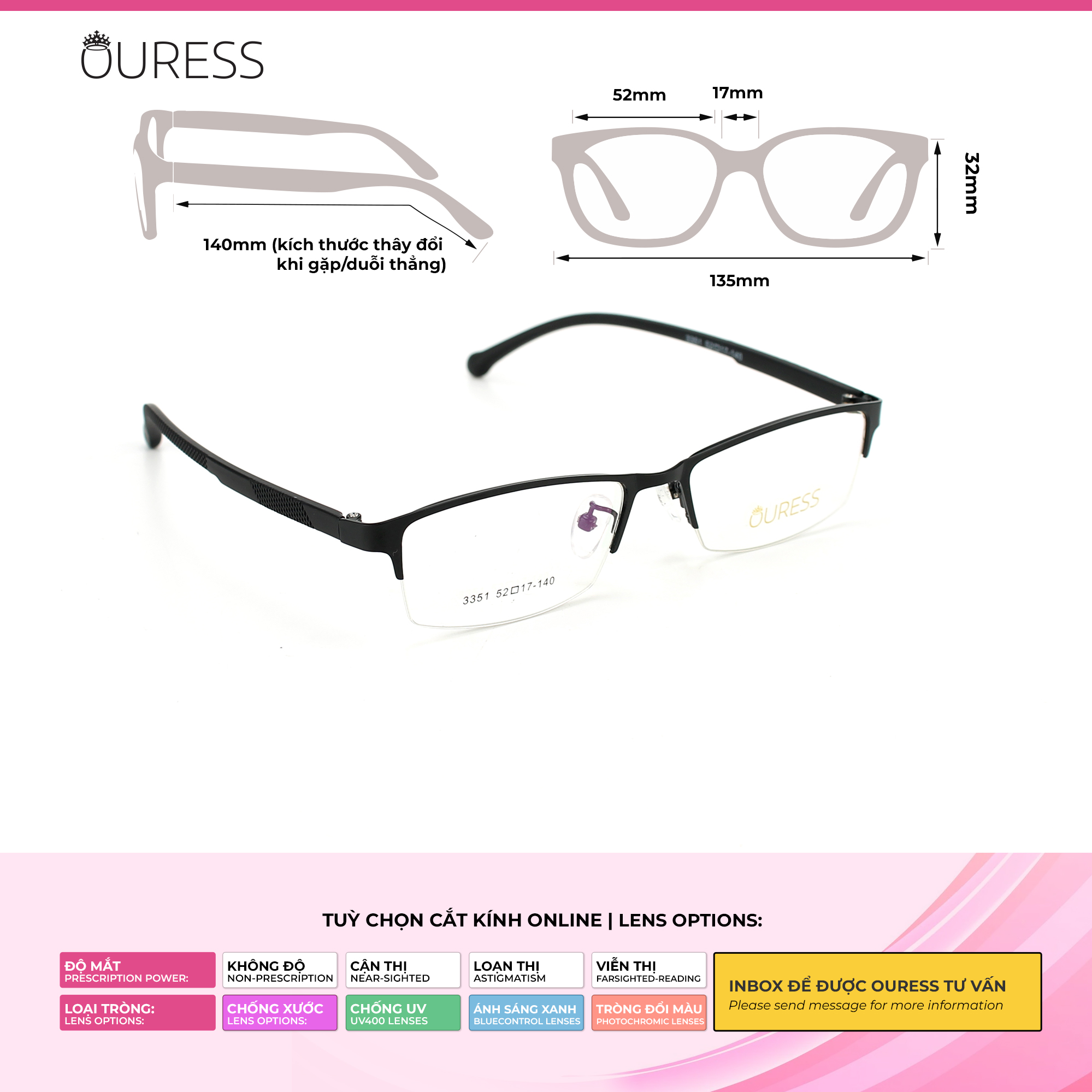 ✨Gọng kính cận 3351 58002 hợp kim cước OURESS thời trang nam nữ siêu nhẹ siêu bền