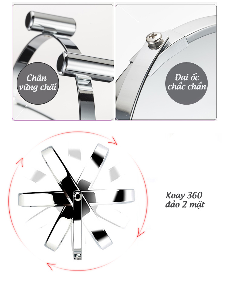 Gương trang điểm để bàn Roman, Crom, phóng đại zoom x3, 2 mặt xoay siêu nét Minh House Lưu ý: Quý khách chọn đúng Size, loại gương nhé. - Mẫu 1: Gương có chân, -