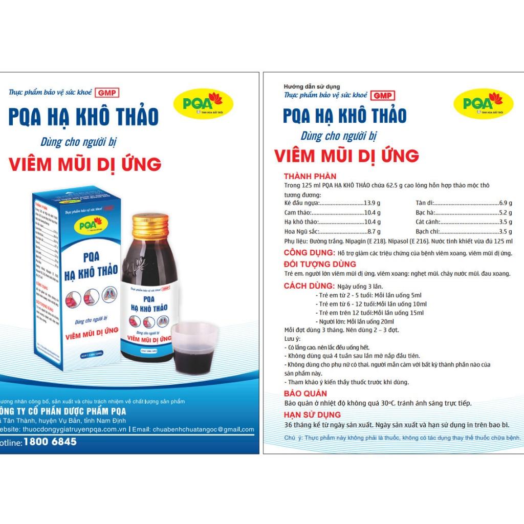Hạ Khô Thảo PQA Hỗ Trợ Thông Mũi, Thông Thoáng Đường Thở Và Viêm Mũi Dị Ứng Hộp 125ml THÔNG TIN SẢN PHẨM: