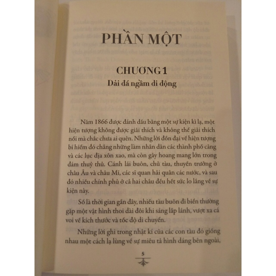 Hai Vạn Dặm Dưới Biển. Câu chuyện bắt đầu khi giáo sư Pierre Aronnax cùng Conseil và thợ săn cá voi Ned Land tham gia chuyến săn một sinh vật biển khổng lồ, được cho là đã gây ra hàng loạt vụ đắm tàu. Họ bị bắt giữ và đưa lên tàu ngầm Nautilus do thuyền trưởng Nemo chỉ huy. Từ đó, hành trình khám phá đáy biển hai vạn dặm bắt đầu qua san hô lấp lánh, xác tàu đắm, và sinh vật kỳ dị mà Jules Verne đã tưởng tượng trước cả khi công nghệ tàu ngầm thực sự có mặt. Trên hành trình ấy, mỗi nhân vật vừa học hỏi, vừa thách thức bản thân và đối diện với những bí mật của Nemo. Từ bối cảnh ấy, những câu hỏi mở tự nhiên phát sinh trong tâm trí người đọc: • Nemo có phải là kẻ chống lại nền văn minh hay là người trữ tình đang tách mình khỏi lỗi lầm trần gian? • Khi kiến thức khoa học và tưởng tượng hòa quyện, liệu đó là đường tới tương lai hay cạm bẫy khiến ta mơ hồ về hiện thực? • Một hành trình dưới biển sâu có giúp con người tìm thấy tự do, hay chỉ đơn giản là một chuyến bay khỏi trách nhiệm với thế giới trên mặt đất? Điều Gì Chờ Đón Người Đọc? • Một tác phẩm phiêu lưu khoa học viễn tưởng đỉnh cao, nơi tầm nhìn của tác giả vượt thời gian và sự tưởng tượng hoà quyện với kiến thức. • Ngôn từ tinh tế kết hợp phong cách diễn đạt dí dỏm và hài hòa khiến cảnh vật dưới biển hiện lên sống động như bản đồ xoay động của thế giới bí ẩn. • Hành trình vừa mang tính giáo dục, giới thiệu các sinh vật biển kỳ lạ, kỹ thuật vận hành tàu ngầm trong thế kỷ 19, vừa mở rộng sự tò mò và khát vọng khám phá. Vài Nét Về Tác Giả & Phong Cách: Jules Verne được biết đến là "cha đẻ văn học khoa học viễn tưởng" với Hai Vạn Dặm Dưới Biển là một trong những kiệt tác nổi bật nhất. Các tác phẩm của Jules Verne đã đưa ra những tiên đoán thần kì về cuộc sống hiện đại cũng như các thành tựu về khoa học kĩ thuật mà không phải nhà văn nào cũng có thể làm được… Các tác phẩm tiêu biểu: