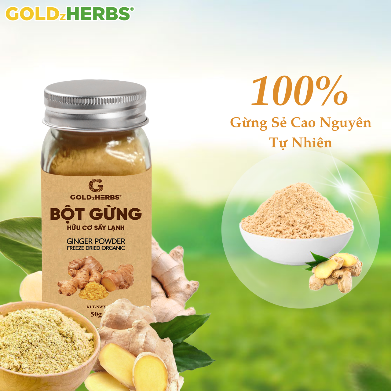 ✨Hàng chính hãng - Bột gừng hữu cơ sấy lạnh GoldzHerbs, 100% nguyên chất, gia vị nấu ăn – 50g