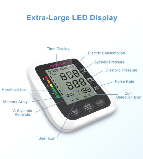 Máy đo huyết áp Jumper JPD-HA100 Theo dõi sức khỏe của bạn với khả năng lưu trữ bộ nhớ tăng lên. Cho phép bạn theo dõi và lưu trữ 198 lần đọc gần đây nhất (2 * 99 lần đọc, có tem ngày và giờ) cho hai người dùng.