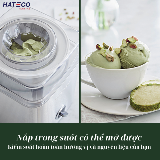 Máy làm kem Cuisinart do Hateco Logistics phân phối là hàng chính hãng 100% - Quý khách hàng yên tâm tuyệt đối về chất lượng sản phẩm Khi khách mua hàng tại Hateco Logistics sẽ được hưởng chính sách cực tốt: ️ SP được test kỹ, ghi bảo hành đủ, gói cẩn thận mới gửi ️ Đổi mới trong 30 ngày nếu sản phẩm lỗi, phí đổi hai chiều shop chịu. ️ Hàng chính hãng + brand new mới 100%, ko bán hàng ref, hàng outlet ️ Được nhân viên hỗ trợ trong suốt quá trình sử dụng, qua tin nhắn, hay điện thoại tận nơi ngay và luôn, nhiệt tình và tận tuỵ. CHI TIẾT SẢN PHẨM Máy làm kem Cuisinart ICE-30BCHK là thiết bị ưa thích cho các bà mẹ, người nội trợ khi muốn làm món kem theo sở thích chế biến của mình, mang lại sự yên tâm khi tự mình làm món kem sạch nhiều mùi vị, rất dễ dàng và nhanh chóng phục vụ món kem với máy làm kem Cuisinart. Sản phẩm thiết yếu cho gia đình. – Máy làm kem tươi ICE-30BC thuộc động cơ hạng nặng của máy có thể làm cho sữa chua, kem, thậm chí đồ uống, đông lạnh trong vòng 25-35 phút. – Cho nguyên liệu tươi vào thố trộn, bật máy. Máy vận hành hoàn toàn tự động. – Công suất của thố trộn lớn cho phép bạn làm được 2 lít kem sánh, mịn màng. – Thố trộn phải được để đông lạnh hoàn toàn trước khi bắt đầu quay kem với công thức của bạn, thời gian để thố đông lạnh từ 16 – 24 giờ. Nhãn hiệu: Cuisinart (màu xám bạc)
