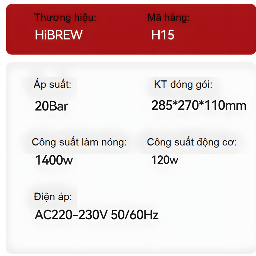 - Về thiết kế HiBREW H15 kết hợp chức năng với vẻ ngoài bóng bẩy và hiện đại. Kích thước nhỏ gọn của nó cho phép nó phù hợp liền mạch với bất kỳ nhà bếp văn phòng hoặc phòng nghỉ nào mà không chiếm quá nhiều không gian. Tính thẩm mỹ của chiếc máy làm tăng thêm nét tinh tế cho môi trường văn phòng, tạo bầu không khí dễ chịu cho nhân viên thưởng thức cà phê
