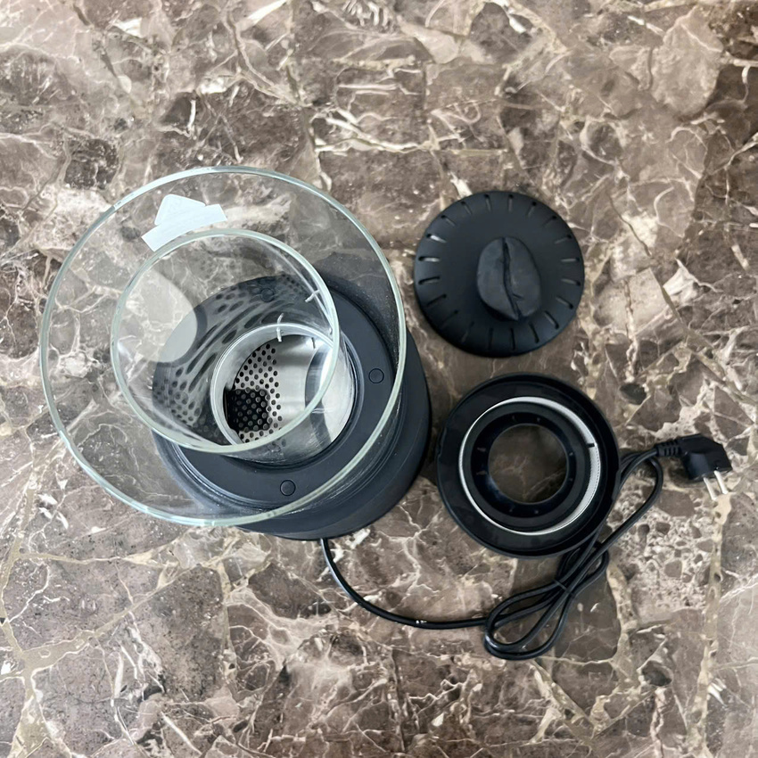 - Thân máy bằng nhựa ABS chịu nhiệt cao cấp, có nắp đậy bằng nhựa Bakelite & thiết kế tay cầm an toàn. Hũ nướng thủy tinh boron cao cấp chịu nhiệt trong suốt, có thể dễ dàng kiểm tra sự thay đổi màu sắc của hạt cà phê trong quá trình nướng. Với giỏ thu gom bã cà phê, giúp việc vệ sinh trở nên thuận tiện hơn. Chức năng rang & làm mát không khí 2 trong 1