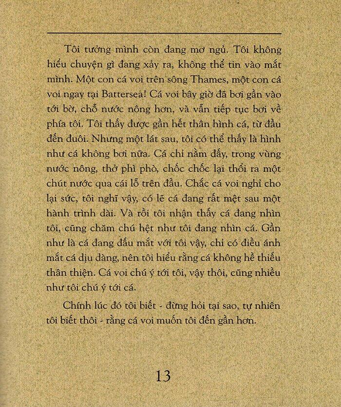 Micheal tưởng m.ình đang mơ khi bắt gặp một chú cá voi trên sông Thames lúc bình minh. Cá voi muốn nhờ cậu gửi một thông điệp vô cùng quan trọng đến toàn thể loài người.