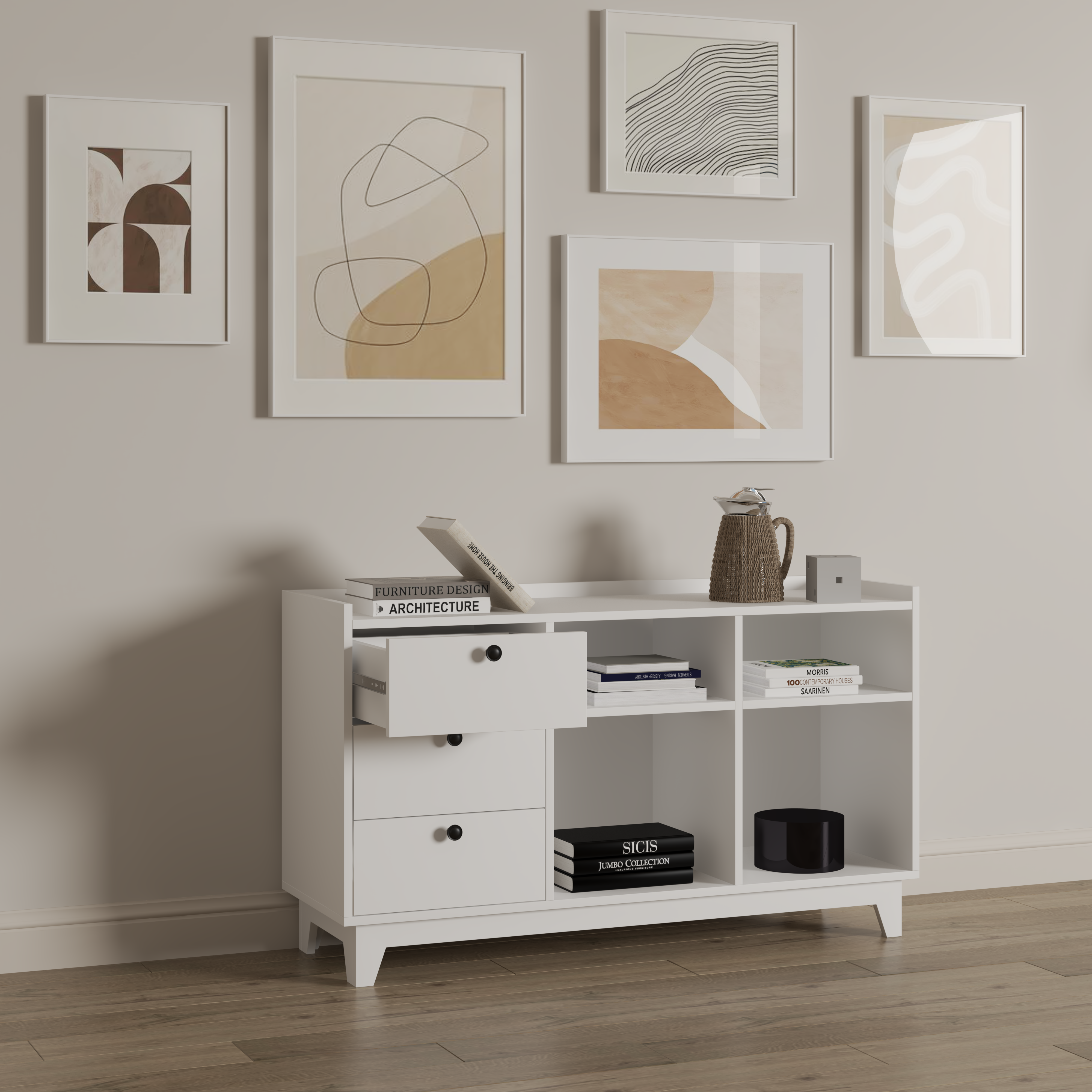kích thước Rộng 160cm, cao 74cm, sâu 20cm chất liệu Gỗ MDF / Độ Dày 17mm mô hình Tháo Lắp Ráp trọng lượng 30kg màu sắc Trắng - Đen - Vân Sồi ####