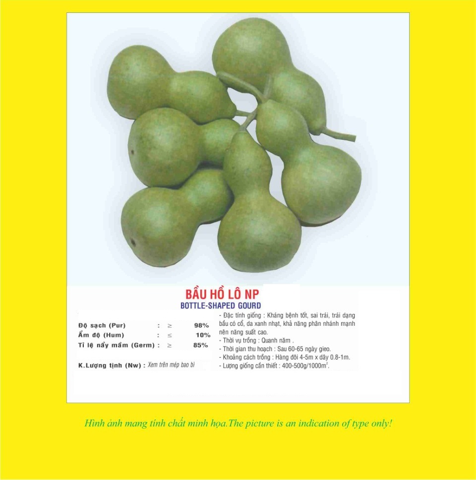 Đặc tính giống: Bầu hồ lô - Giống ngắn ngày, kháng bệnh tốt, sai trái, trái dạng bầu cổ, da xanh nhạt, khả năng phân nhánh mạnh nên năng suất cao