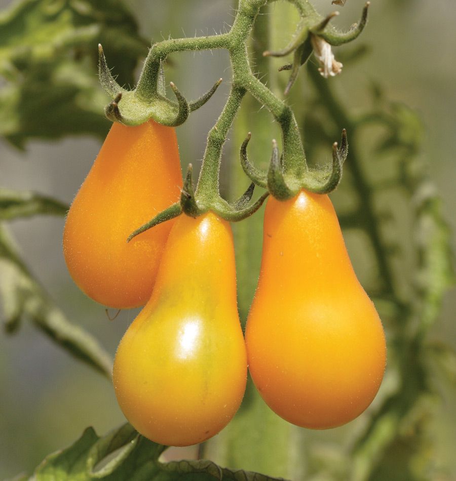 Đặc tính giống: Cà chua Lê Vàng - cây phát triển vô hạn, sinh trưởng phát triển khỏe, kháng bệnh tốt. Thân có nhiều nhánh, mỗi nhánh có nhiều chùm quả, mỗi chùm có 8-10 quả. Trái hình quả lê, thịt dày và ngọt, chín màu vàng bóng rất đẹp, có giá trị dinh dưỡng cao. Trái nặng 15-20g