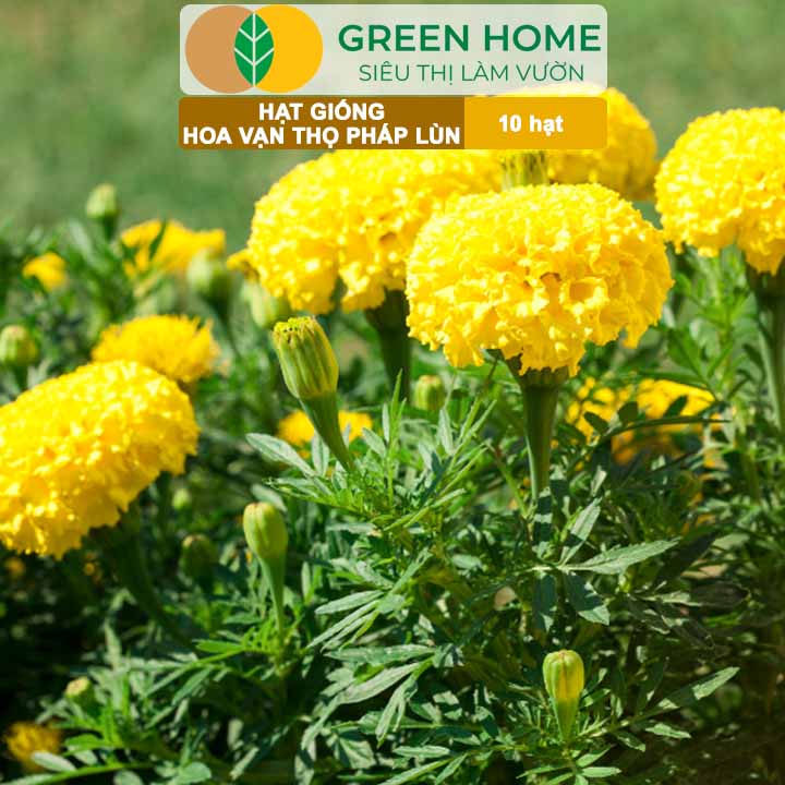 ✨Hạt Giống Hoa Vạn Thọ Pháp Lùn F1 Vàng Chanh GreenHome, Gói 10 hạt, Dễ Trồng Quanh Năm, Trồng Chậu H19