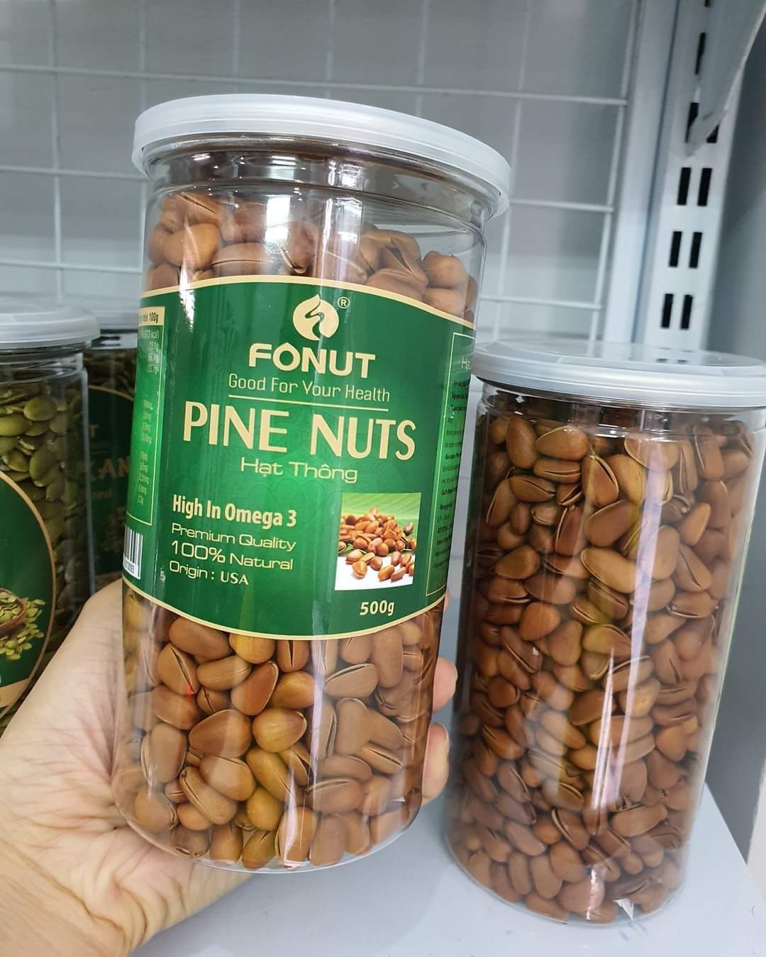 Mua tại TiktokHạt thông xuất xứ tại Mỹ ️ Xuất xứ: Mỹ ️ Trọng lượng: hũ 500gr ️ Giá: 350.000 đ / hũ ️ HSD: 1 năm