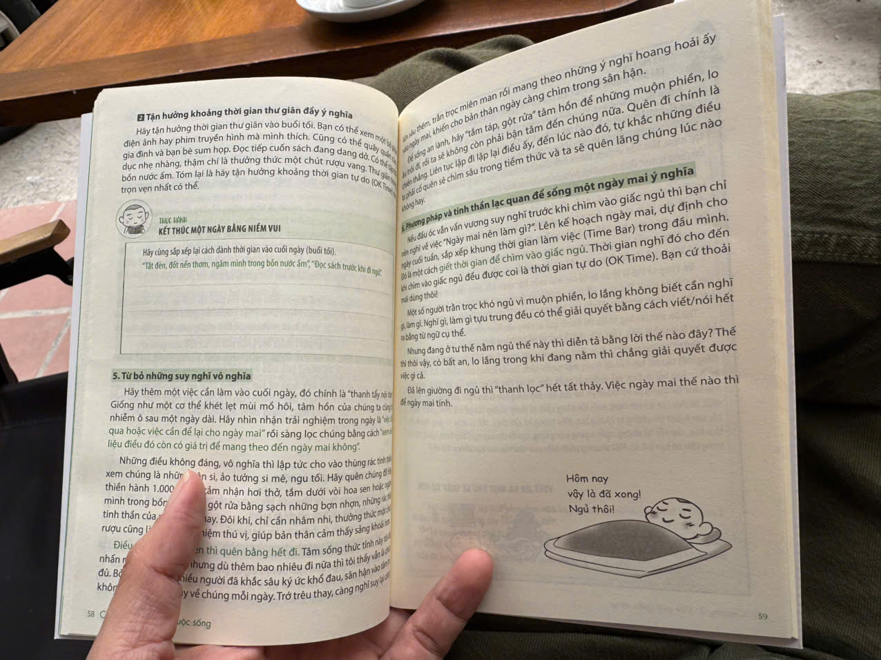 Hãy mở cuốn sổ này ra, dùng bút viết, tô màu và dần dần kiến tạo nên cuộc sống mong muốn của riêng mình. Viết ra những hoạch định mỗi ngày, càng đều đặn bao nhiêu thì lối sống mong muốn của bạn sẽ càng sẽ hiện hữu rõ ràng bấy nhiêu. Cuối cùng chỉ cần bắt tay vào thực hiện. Lúc ấy, ắt hẳn những tháng ngày hạnh phúc sẽ đến!