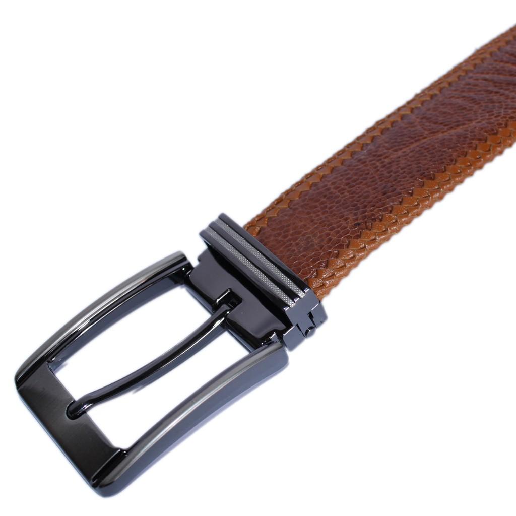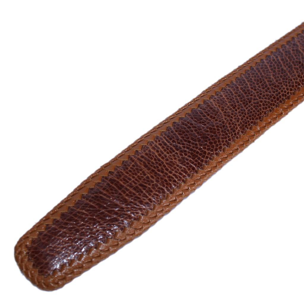 ✨HC4465 - Dây nịt nam da đà điểu Huy Hoàng đan viền 3,5P đầu kim màu vàng bò