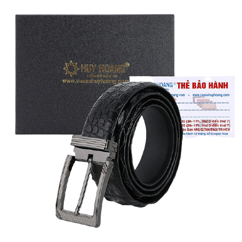 Dây nịt/Thắt lưng nam da bò Huy Hoàng vân cá sấu 1 lớp 3,5P màu đen 4150