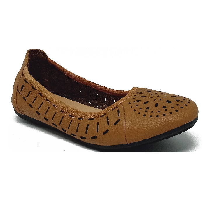 Giày nữ hoa văn Huy Hoàng da bò màu nâu 7949