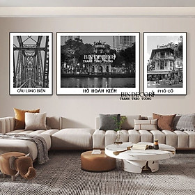 ✨(HCM) Tranh treo tường Hà Nội trắng đen 3 trang trí quán ăn, nhà hàng,khách sạn kèm đinh treo