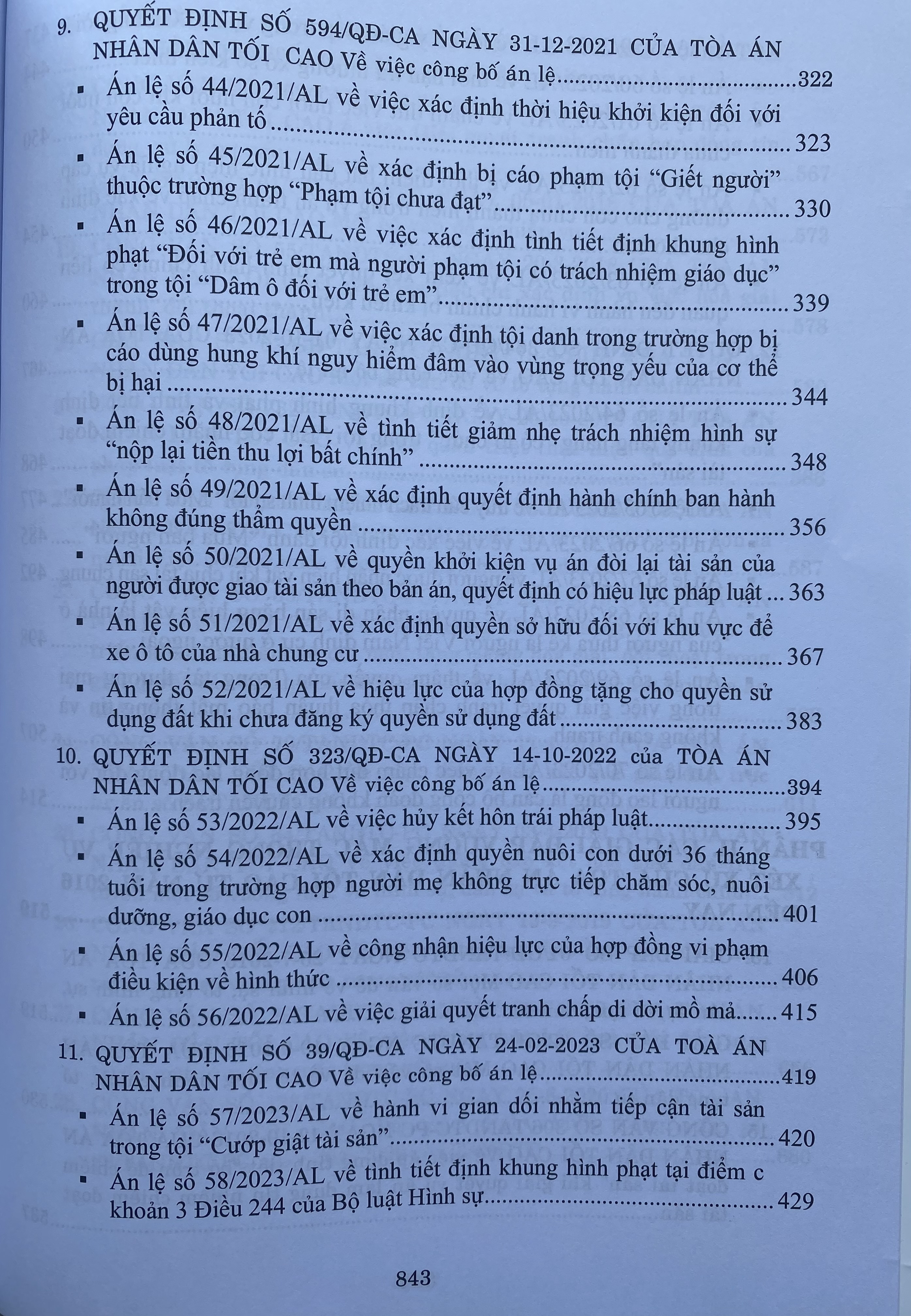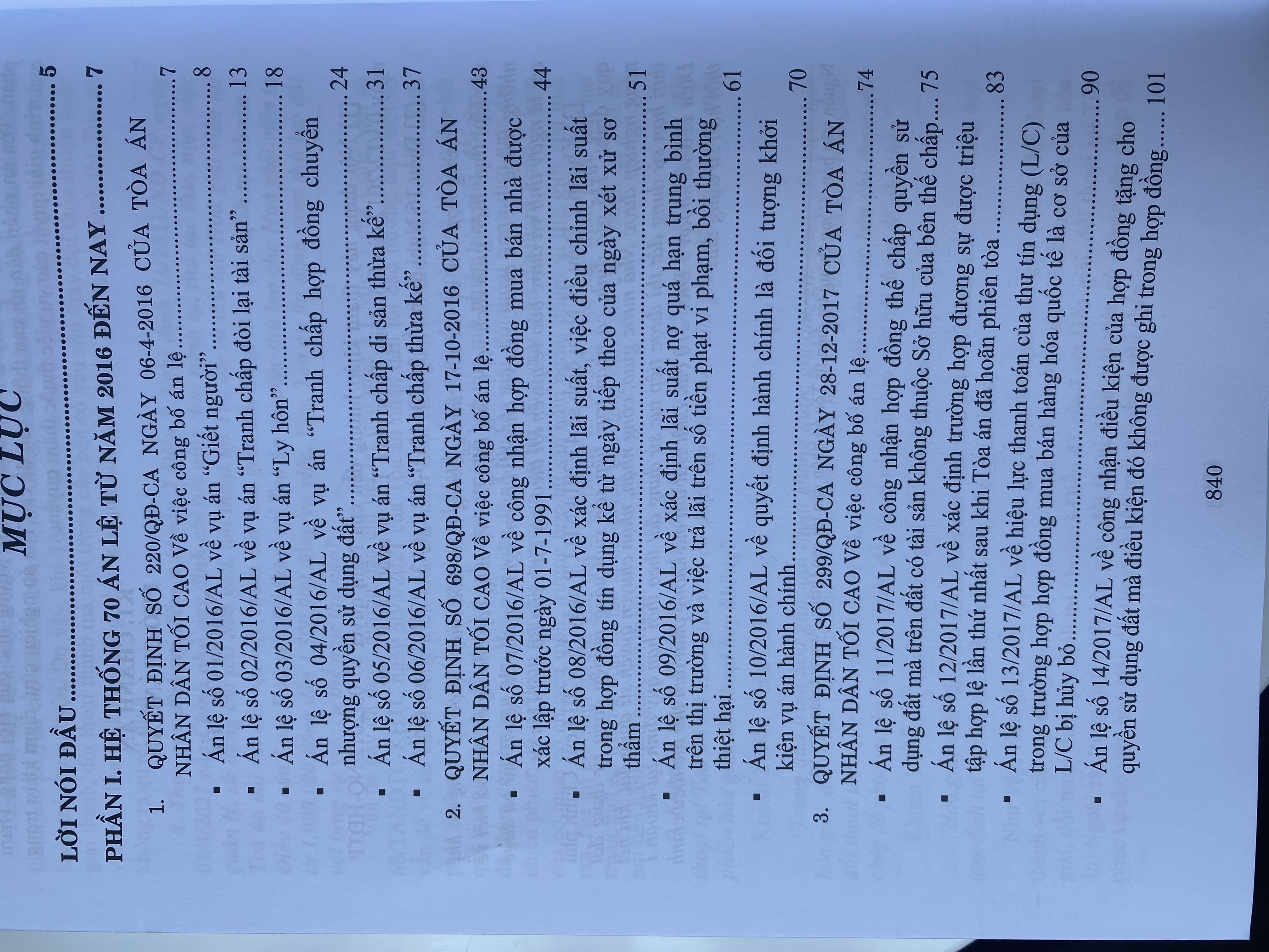 Phần I. Hệ thống 70 Án lệ từ năm 2016 đến nay