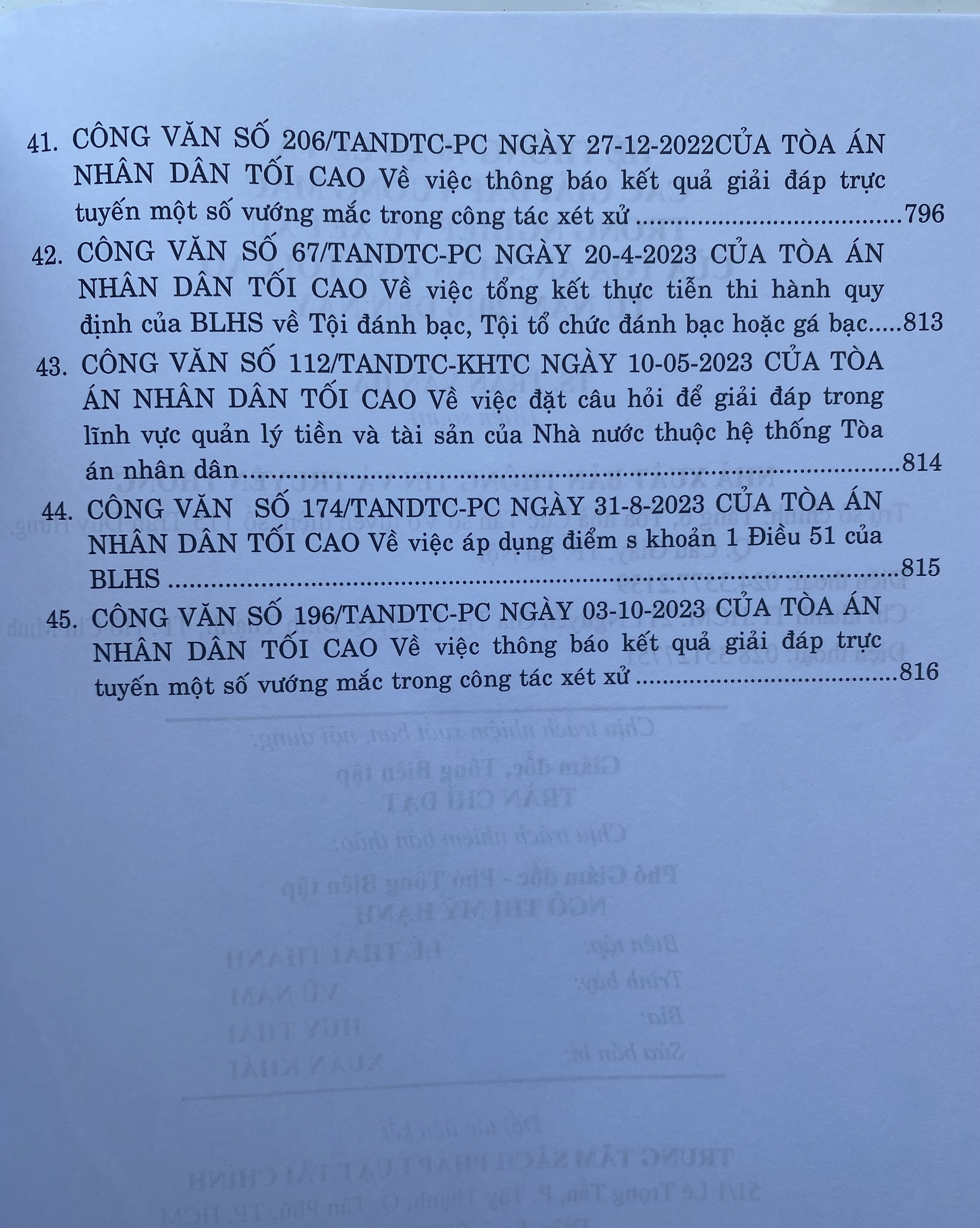 Hy vọng rằng đây sẽ là tài liệu hữu ích để bạn đọc, đặc biệt là các thẩm phán, hội thẩm, kiểm sát viên, điều tra viên, các học viên tư pháp, luật sư và những người làm công tác pháp luật nghiên cứu, áp dụng trong thực tiễn xét xử.