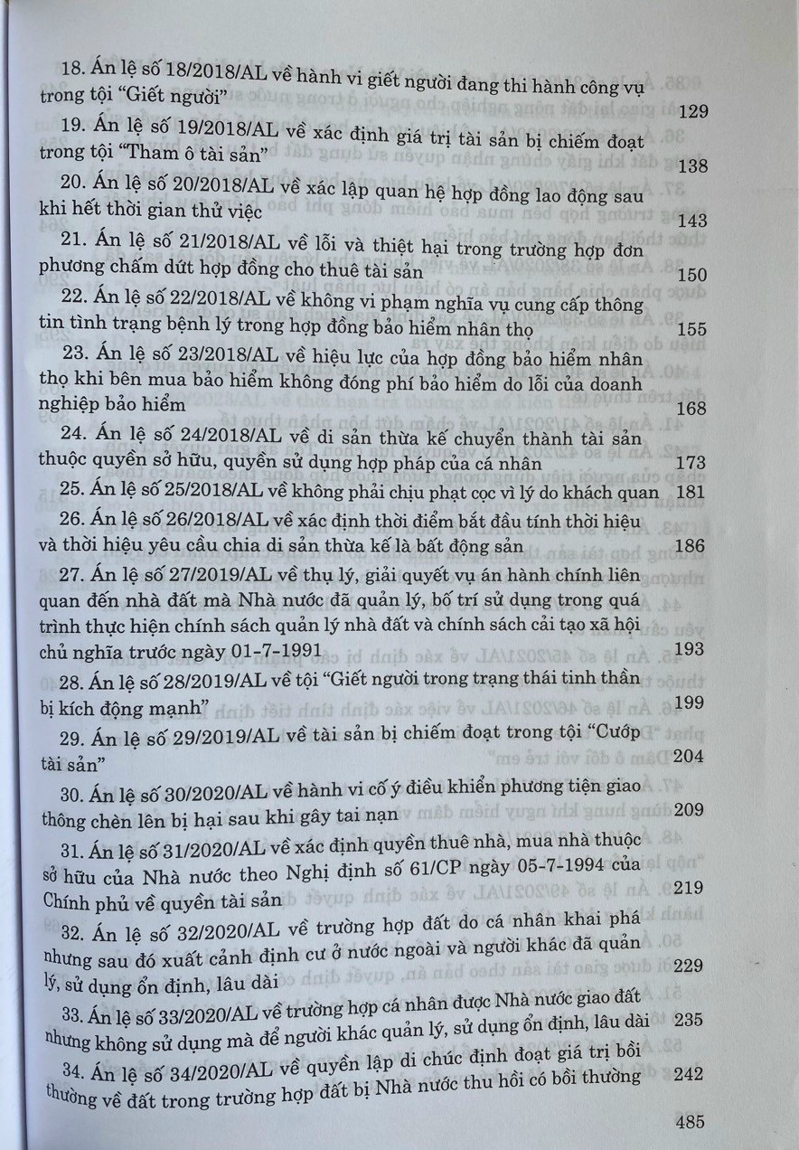 Để thuận tiện cho việc nghiên cứu, tìm hiểu, vận dụng án lệ trong quá trình thực hiện nhiệm vụ xét xử của Tòa án; giúp các cơ quan, tổ chức, cá nhân quan tâm tới hoạt động của Tòa án có thể tiếp cận với các án lệ đã ban hành; tạo nguồn tham khảo cho các hoạt động giảng dạy, nghiên cứu khoa học của các cơ quan, tổ chức, cá nhân, Nhà xuất bản Lao Động xuất bản và phát hành cuốn : “Hệ thống án lệ Việt Nam (hiện hành) từ án lệ số 01 đến án lệ số 70”.