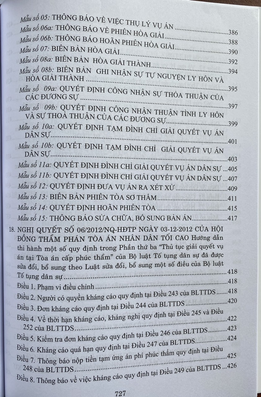 Phần II. Hệ thống các Nghị quyết của Hội đồng Thẩm phán Tòa án nhân dân tối cao về tố tụng dân sự