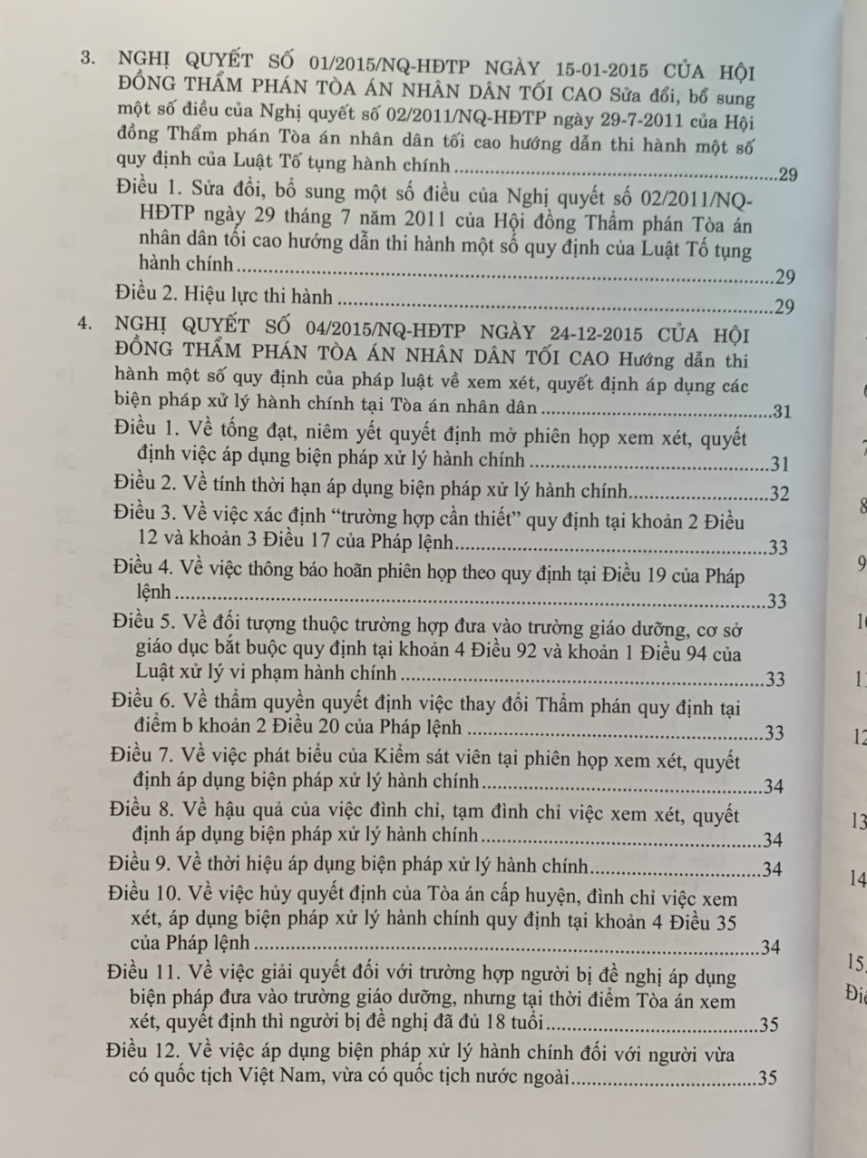 Phần I. Hệ thống các Nghị quyết của Hội đồng Thẩm phán Tòa án nhân dân tối cao về hành chính