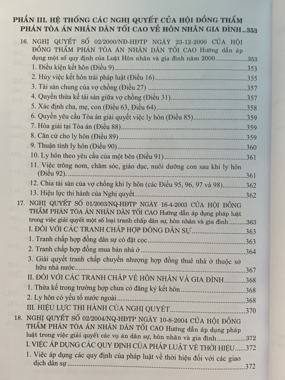Phần II. Hệ thống các Nghị quyết của Hội đồng Thẩm phán Tòa án nhân dân tối cao về hôn nhân gia đình