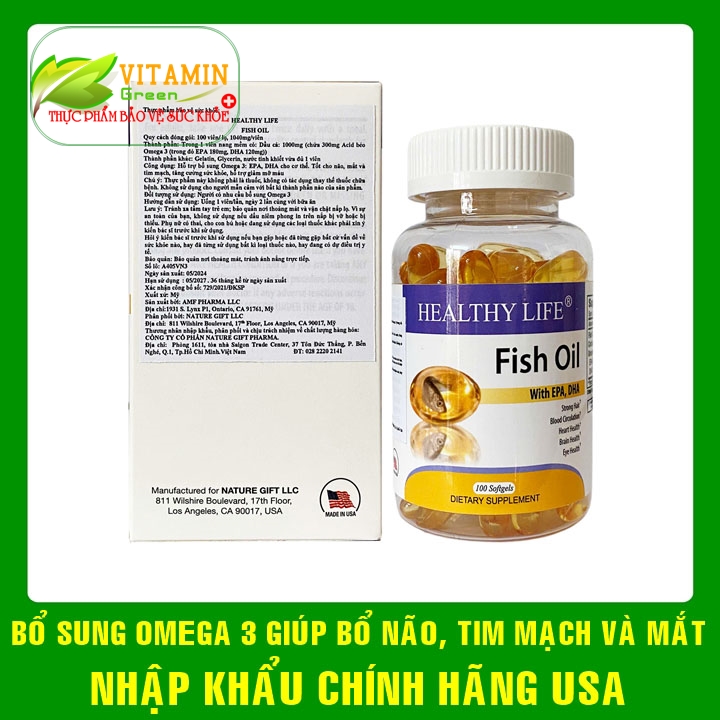 ✨Healthy Life Fish Oil Viên Uống Dầu Cá Bổ Sung Omega 3 DHA EPA tốt cho tim mạch não bộ và mắt | Nhập khẩu Mỹ