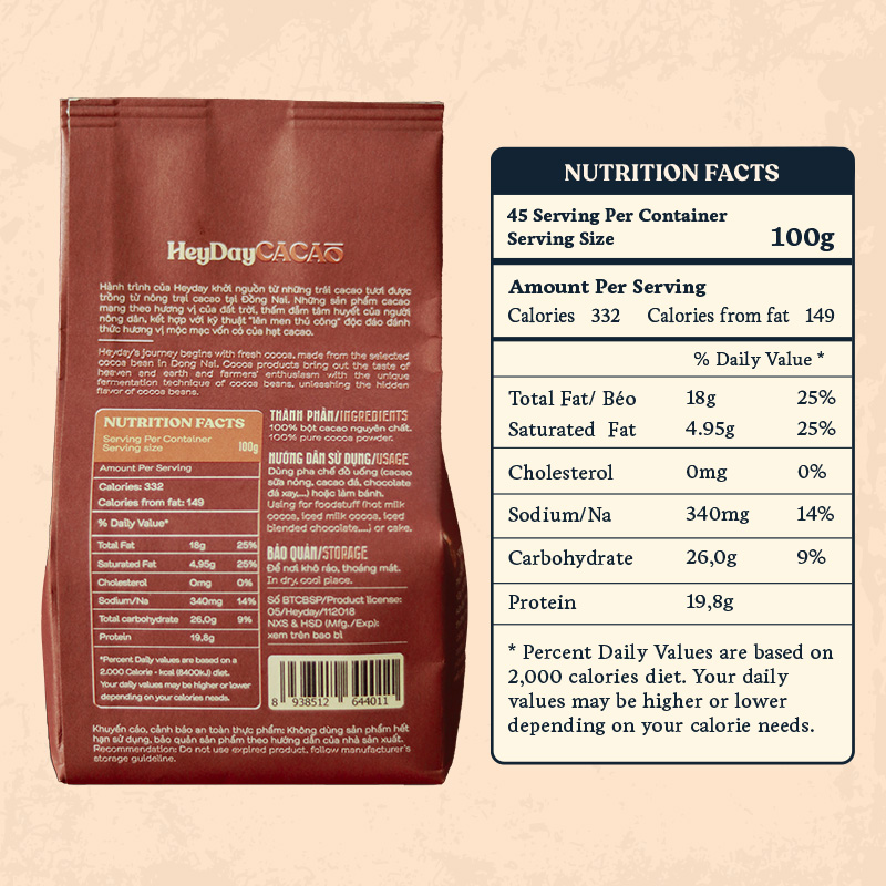 Đạt chuẩn UTZ Quốc Tế. Khi bạn sử dụng cacao của Heyday là bạn đang sử dụng 1 sản phẩm bột cacao vừa đạt tiêu chuẩn về an toàn cho sức khoẻ, đồng thời, cũng chung tay bảo vệ môi trường, bảo vệ tài nguyên đất trồng trọt trên toàn thế giới cho các thế hệ tương lai. Bạn có thể tìm hiểu thêm về chứng nhận UTZ ở các tài liệu chính thống nhé.
