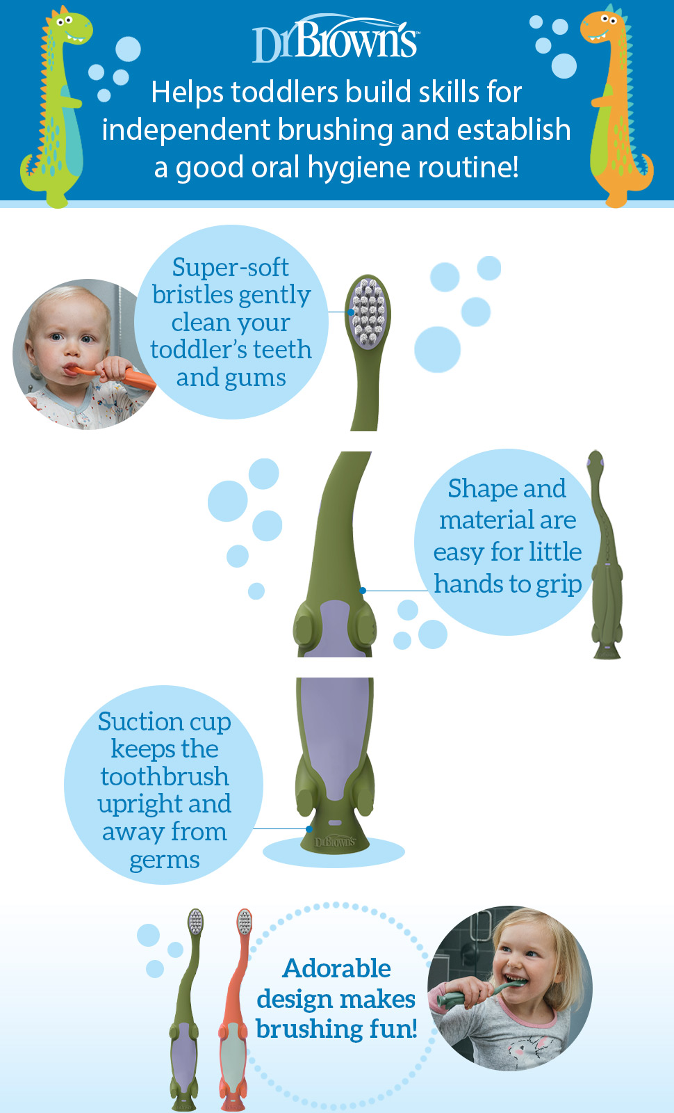 ✨[ HG088 ] Bàn chải đánh răng Dr.Brown's hình con khủng long cho trẻ từ 1-4 tuổi