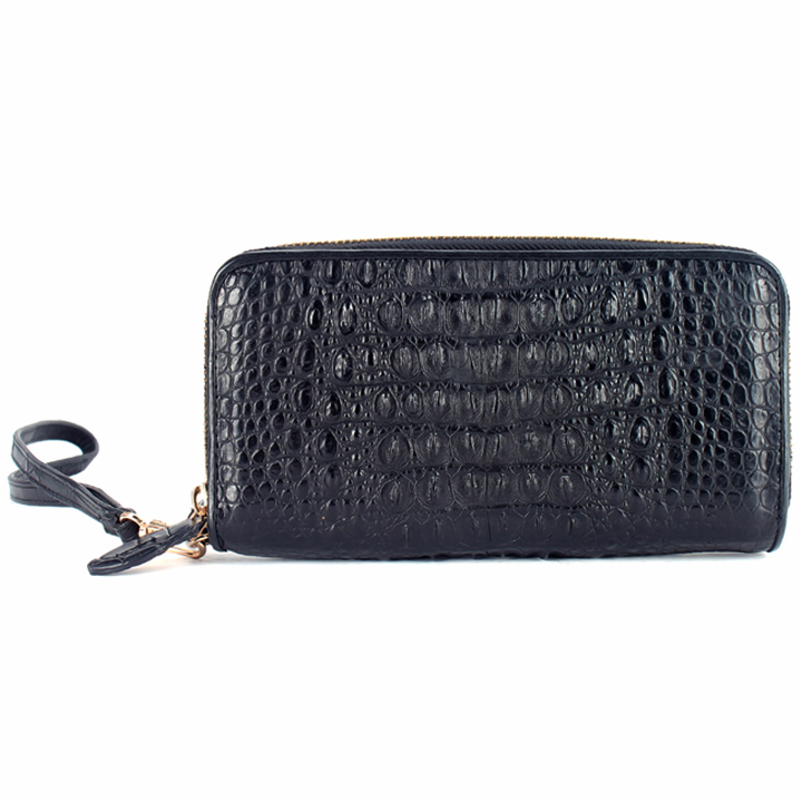 Ví da cá sấu cầm tay 2 ngăn khoá kéo | Ví cầm tay màu nâu đỏ