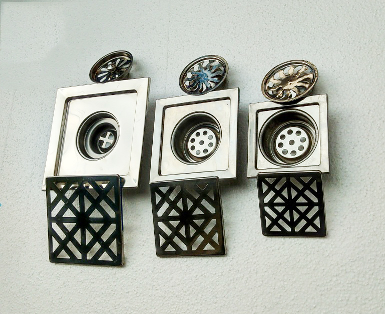 Hố Ga Phểu Thoát Sàn Inox, có 2 mẫu, với kích thước sau: 1. Mẫu phểu dập, dày 0.4mm, kích thước vuông 12cm, 15cm 2. Mẫu phểu đúc, dày 1.2mm, kích thước vuông 10cm, 12cm,
