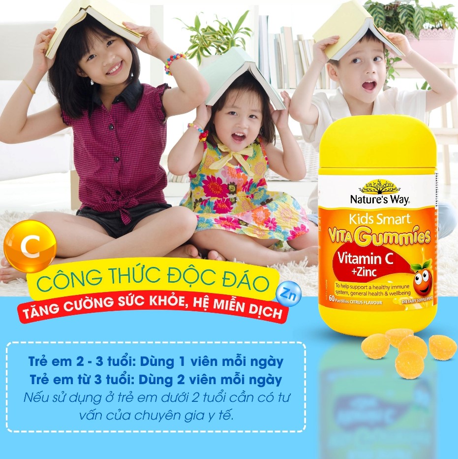 Hỗ trợ sức khỏe hệ miễn dịch cho trẻ Nature's Way Vita Gummies Vitamin C + Zinc tăng sức đề kháng, nhanh lành bệnh, hỗ trợ ăn ngon - OZ Slim Store
