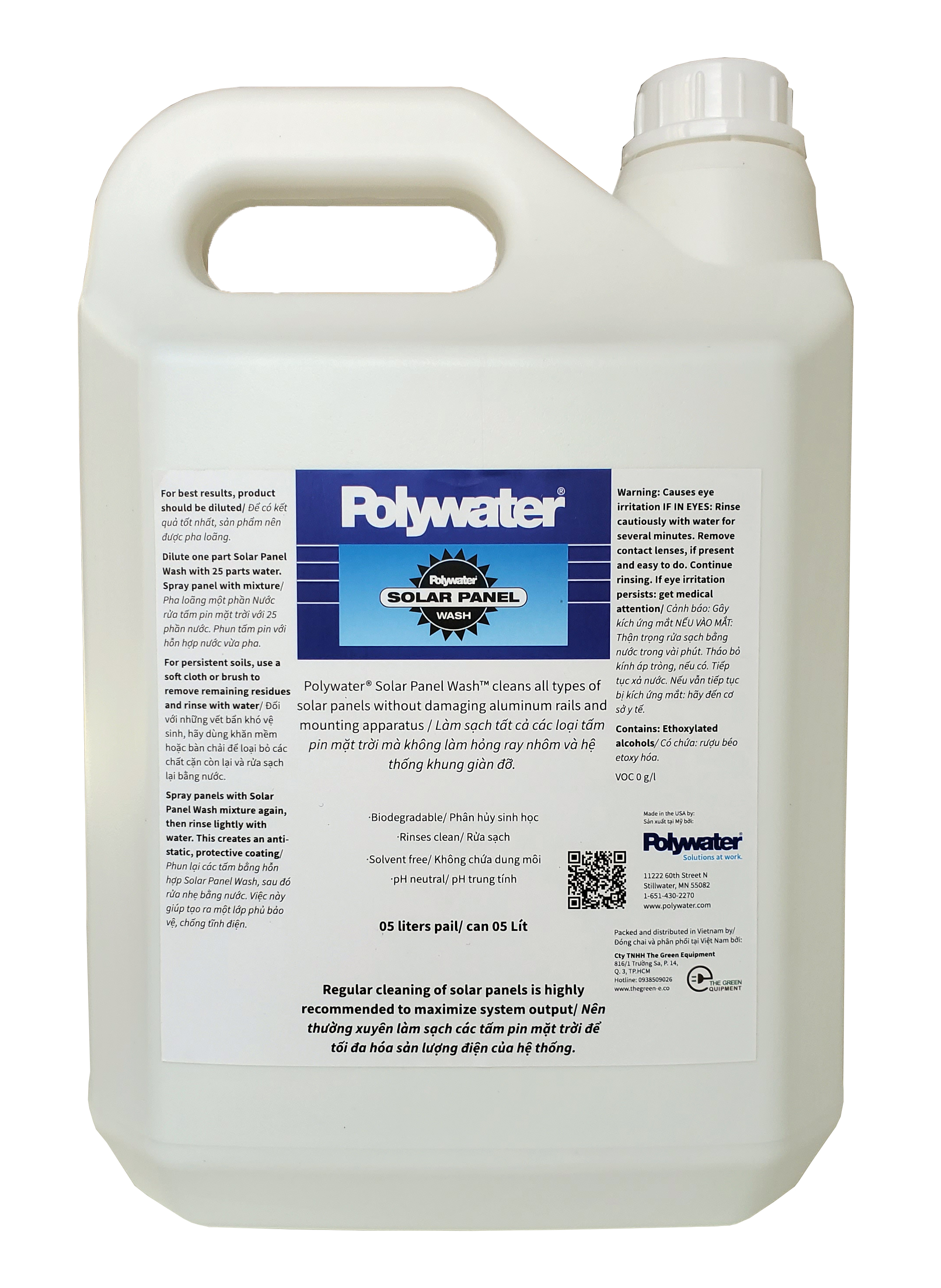 Nước rửa tấm pin mặt trời Polywater SPW – một giải pháp làm sạch tấm pin với chi phí tiết kiệm nhất, hiệu quả nhất, an toàn cho hệ thống pin, môi trường và người sử dụng.