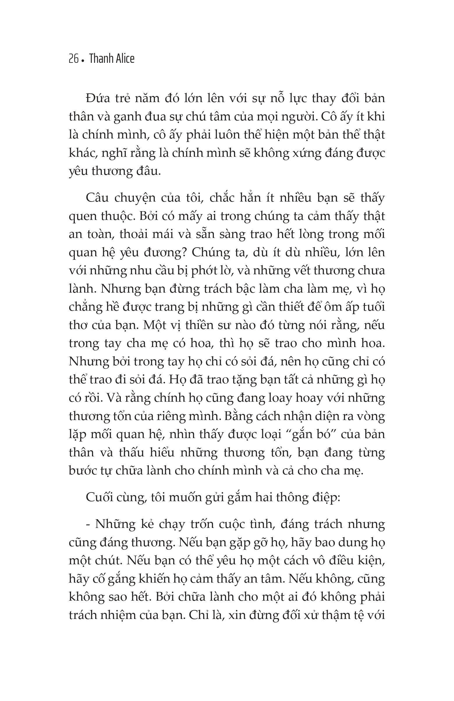 Học Thương Mình Giữa Muôn Vàn Vụn Vỡ - 1/5 Giây Để Rung Động Với Chính Mình Giới thiệu tác giả: Thạc sĩ giáo dục Thanh Alice Chuyên gia Khai Vấn đang hỗ trợ hàng nghìn phụ nữ trẻ vun bồi nội tâm, trí tuệ và chạm tới phiên bản rạng rỡ nhất của mỗi người. Đôi nét về tác giả Thanh Alice: