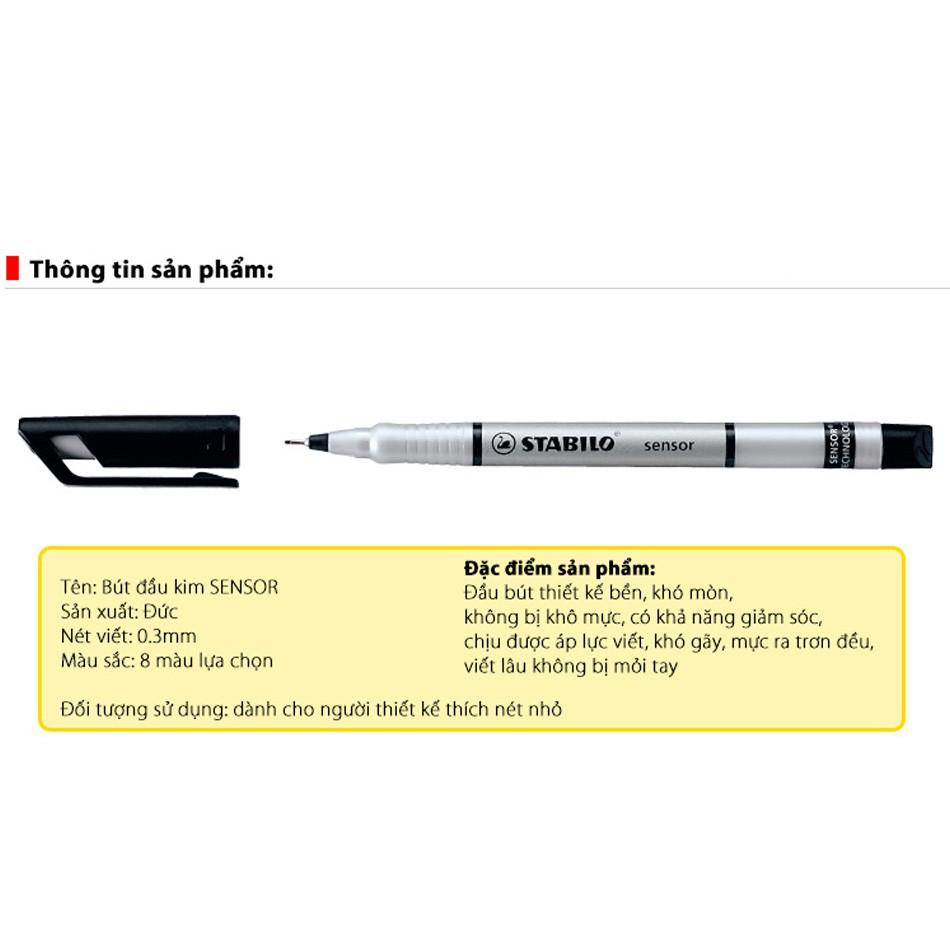 ✨Hộp 10 Bút kỹ thuật STABILO SENSOR F 0.3mm (SENF/10) - Xanh lá