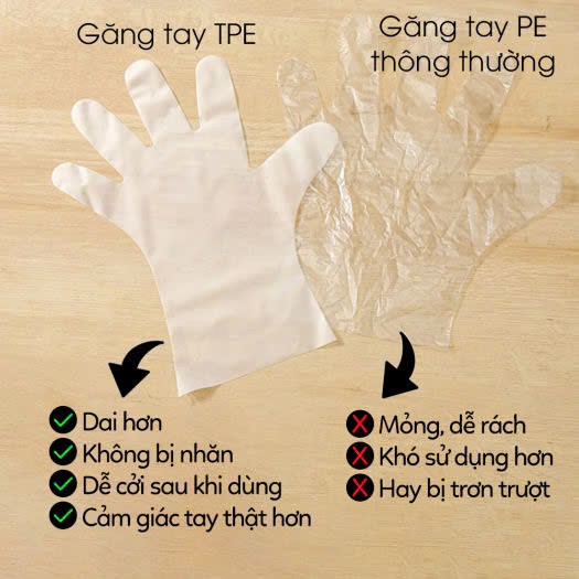 - Chất lượng cao TPE kháng khuẩn, chống mùi hôi, siêu dai ko dễ rách như các loại găng tay khác trên thị trường, an toàn sử dụng cho khách hàng.