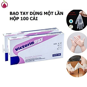 Hộp 100 găng tay cao su TPE Victoria Bay, bao tay siêu dai dùng 1 lần làm bếp nấu ăn vệ sinh GiaDụ