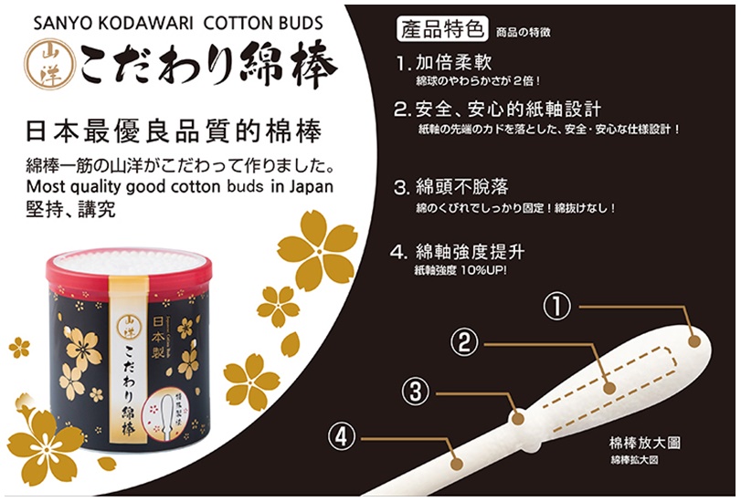 ✨Hộp 180 tăm bông ngoáy tai kháng khuẩn Sanyo Nhật Bản - Hàng nội địa Nhật Bản nhập khẩu chính hãng