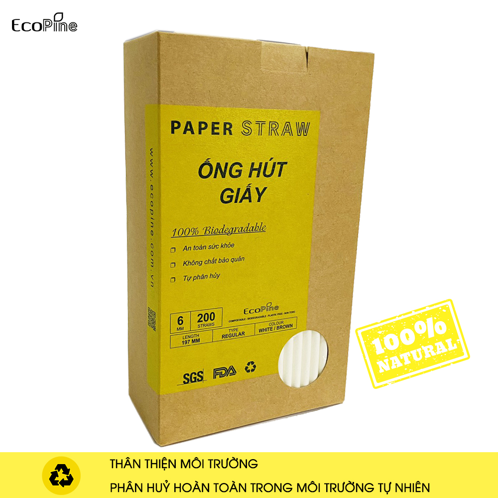 ✨Hộp 200 ống hút giấy phi 6mm màu trắng ECOPINE - Dùng cho cafe, nước ngọt, nước ép