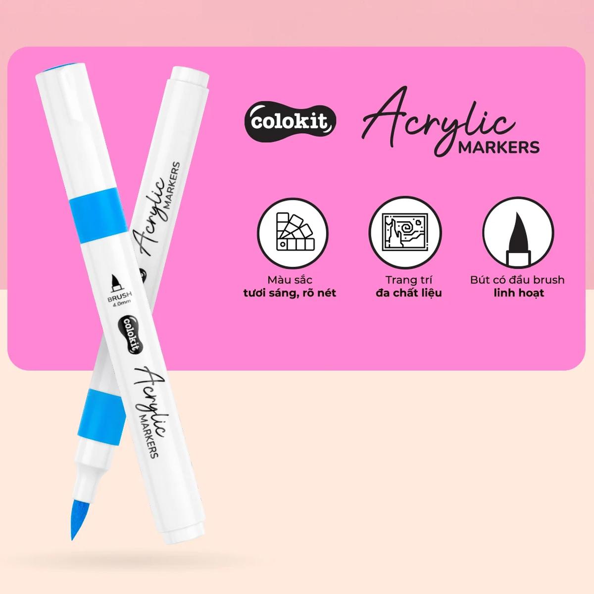 Hộp 24 Bút Sơn Acrylic Mực Lỏng - Colokit ACM-C012 Bút lông màu Acrylic Markers 1 đầu 24 màu với thiết kế đầu BRUSH linh hoạt đáp ứng được đa dạng nhu cầu sử dụng.
