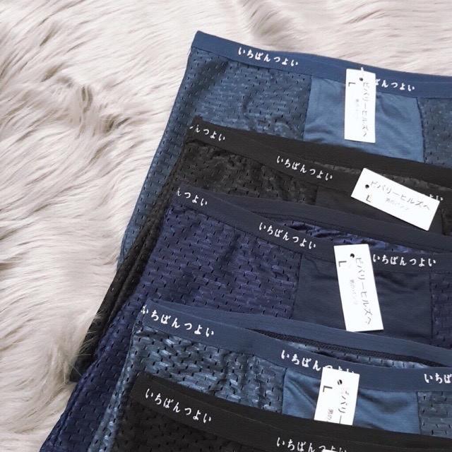 Sịp đùi Nam Thông Hơi xuất Nhật hộp 5 chiếc giá: 165k / hộp 5 c Thiết kế lưới ấn tượng, chức năng chính điều hoà thông hơi. MỀM MẠI – KHÔ THOÁNG – MẶC