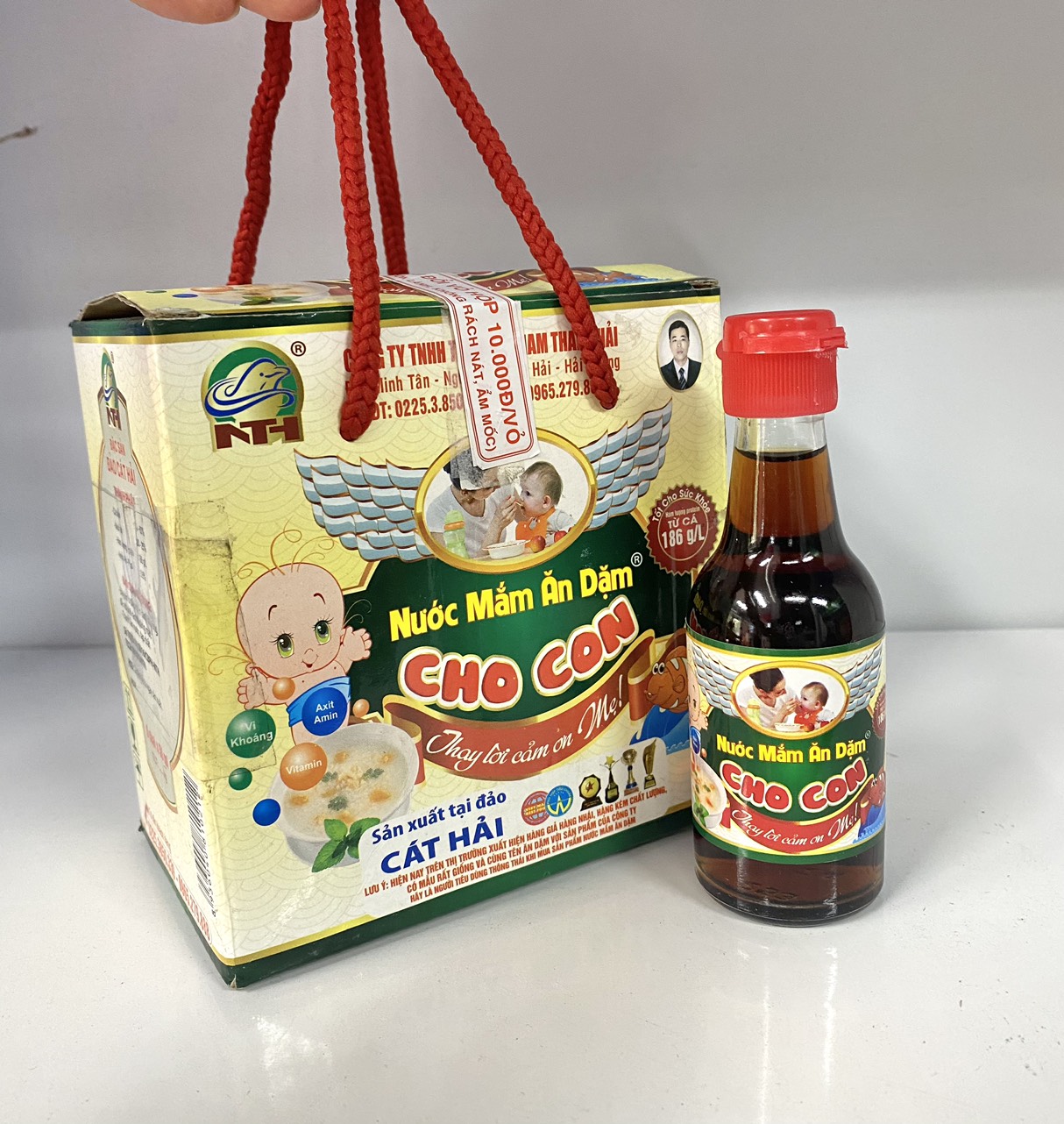 - Nước mắm truyền thống cho bé ăn dặm với nhiều axit amin, vitamin và sắt, ít mặn thích hợp cho các bé bắt đầu tập ăn dặm.