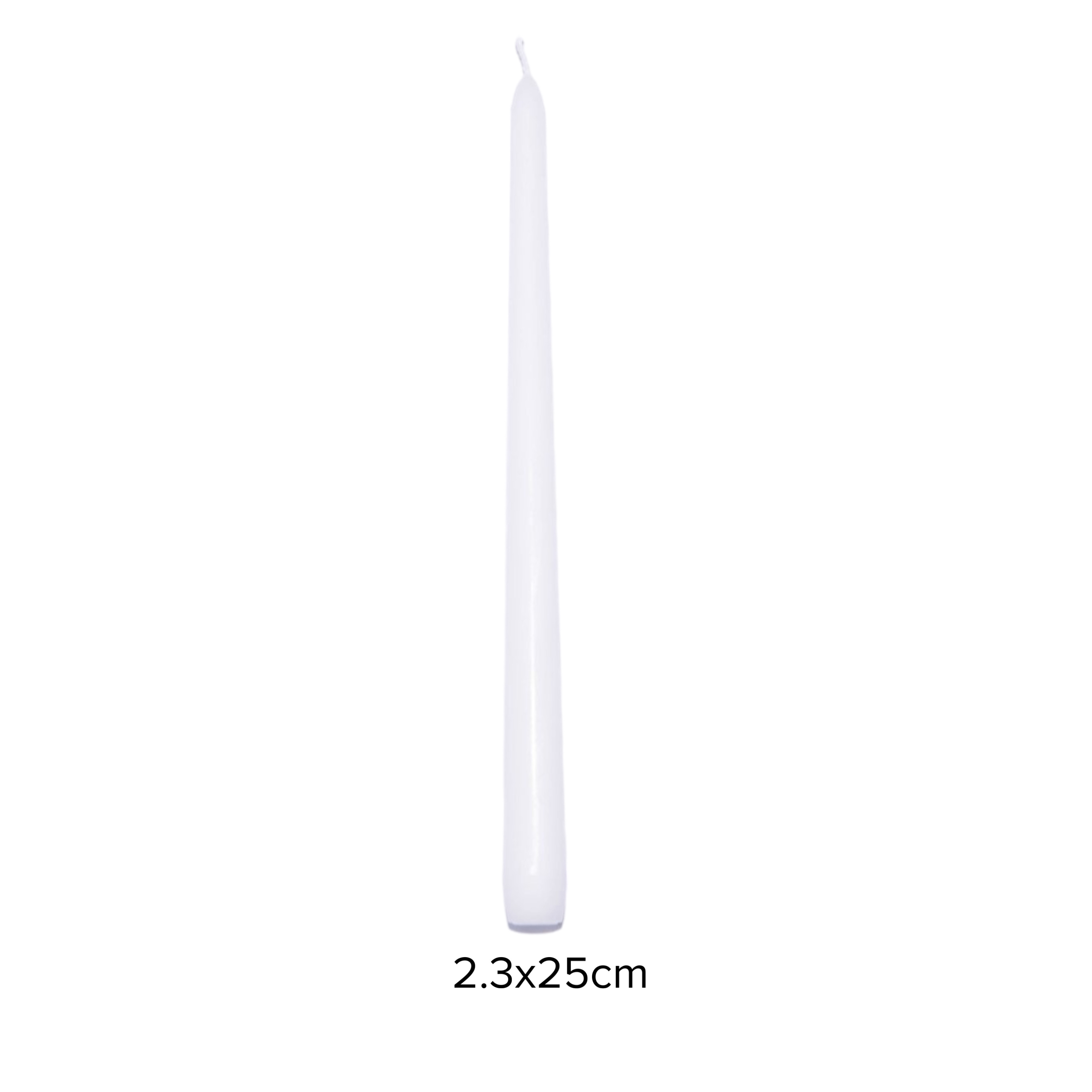 • Kích thước: đường kính (D) x chiều cao (H): 2.3 x 25 cm, thiết kế theo tiêu chuẩn cắm nến taper (nến hình búp măng non)