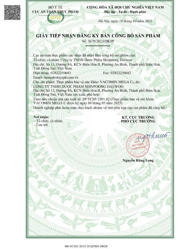 THỰC PHẨM BẢO VỆ SỨC KHỎE | VACOMIN MEGA C - Hỗ trợ nâng cao đề kháng, bổ sung năng lượng, hấp thu sắt và làm đẹp da