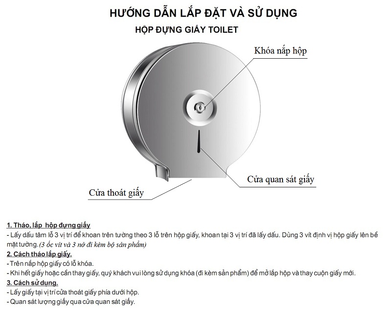 Pham vi sử dụng: Hộp đựng giấy vệ sinh cuộn lớn inox bóng chuyên dùng cho công trình khách sạn , nhà hàng, nhà ga, trung tâm thương mại, sân bay, công trình công cộng…Tác dụng của sản phẩm là giúp tránh nước, tránh bụi giữ cho giấy vệ sinh luôn khô ráo, tránh ẩm ướt.Hộp đựng giấy cuộn lớn có sức chứa lớn gấp 10 lần loại hộp đựng giấy mini thông thường, rất tiện lợi và tiết kiệm.Sản phẩm có khóa và cửa sổ kiểm soát giấy.