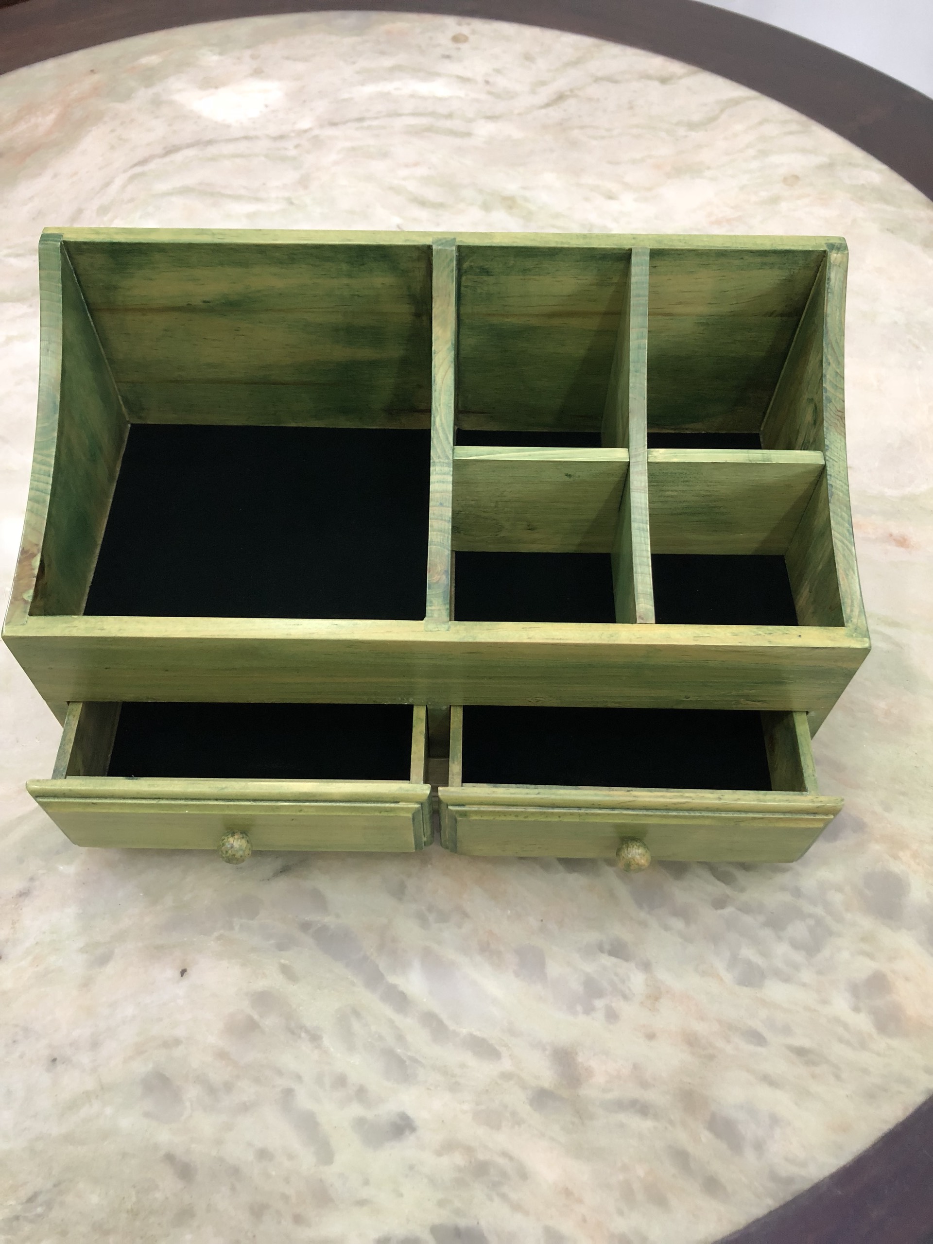 SẢN PHẨM ĐƯỢC LÀM TỪ GỖ SỒI SƠN CAO CẤP XINH XẮN, DỄ THƯƠNG KÍCH THƯỚC: DÀI 34CM X SÂU 18 CM X CAO 19 CM THIẾT KẾ ĐẶC BIỆT CÓ NHIỀU HỘC, NHIỀU NGĂN ĐỂ ĐỰNG CÁC LOẠI TRANG SỨC, MỸ PHẨM