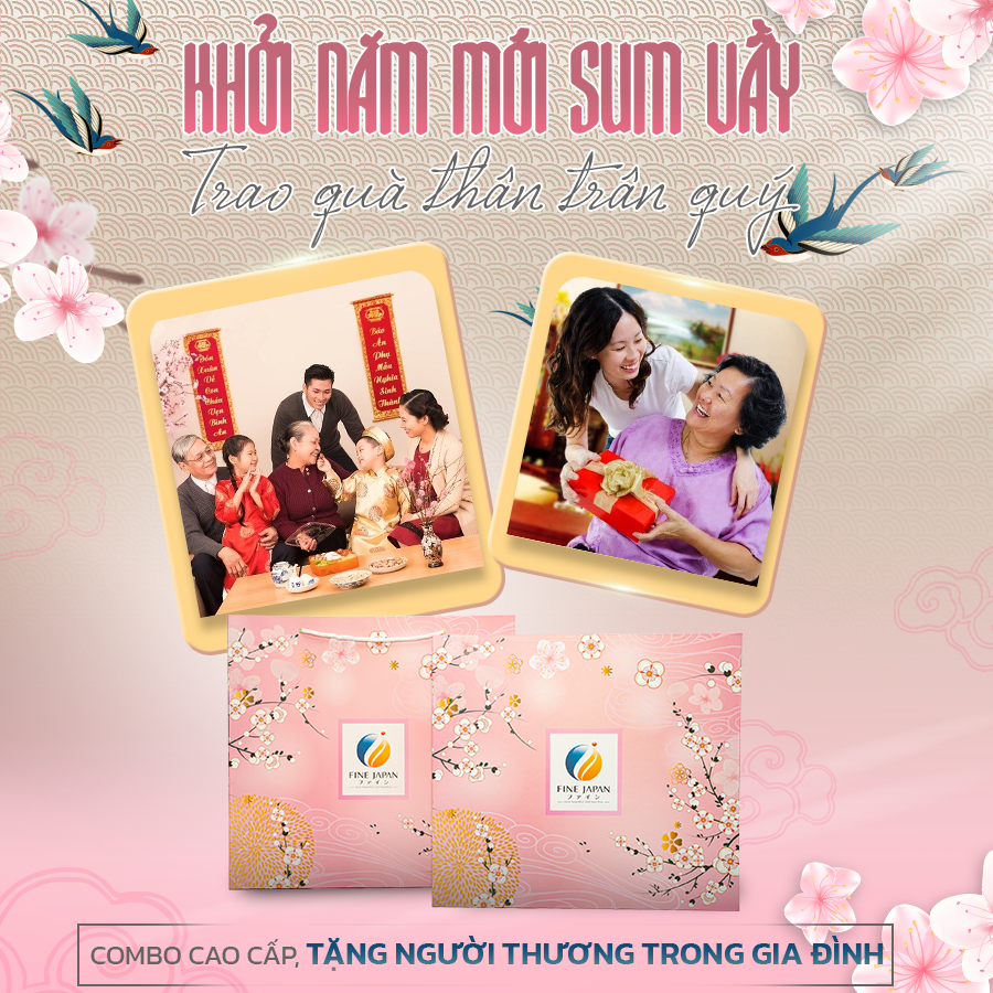 ✨[Hộp quà Tết 2023] SAKURA TẾT VIÊN MÃN Fine Japan hộp quà cho cả gia đình (Bột rau xanh, Vitamin CD, bổ não, canxi cá tuyết)